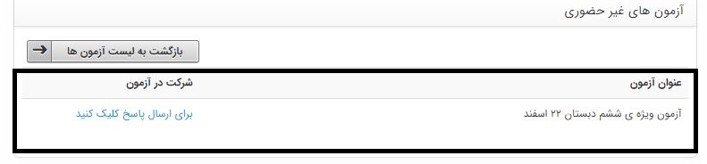 4)بر روی قسمت "شرکت در آزمون"کلیک کنید.