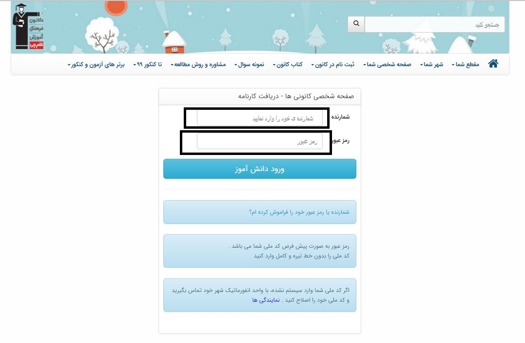 2)در این قسمت شمارنده و رمز عبور را وارد میکنید تا وارد صفحه ی شخصی شوید.