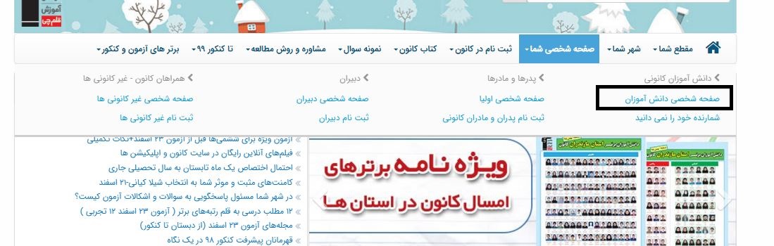 1)از سایت کانون وارد صفحه شخصی خود میشوید.