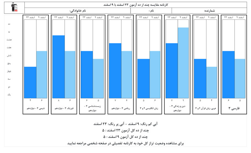 نمونه کارنامه مقایسه ای را در ادامه مشاهده می نمایید.