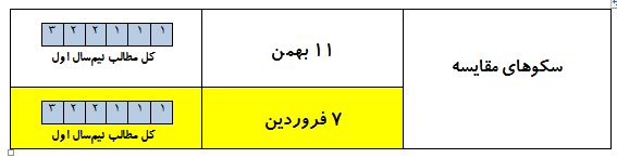 مباحث ازمون 15 فروردین شامل تمام مباحث نیمسال اول و نیمی از مباحث نیمسال دوم است.بنابراین آزمون 7 فروردین یک پیش آزمون جهت آمادگی آزمون 15 فروردین است.