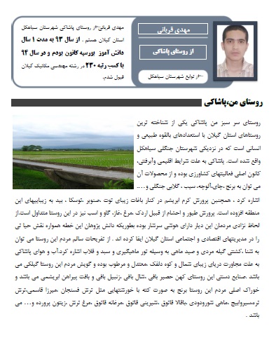 مهدی قربانی از روستای پاشاکی شهرستان سیاهکل