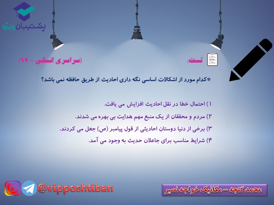 همچنین می توانید با عضویت در کانال تلگرام و صفحه اینستاگرام پشیبان ویژه از دیگر کلاس های نکته و تست پشتیبان ویژه، آزمون های روزانه و سایر مطالب روزانه و راهنمایی های رتبه های برتر کنکور سال های اخیر بهره مند شوید.