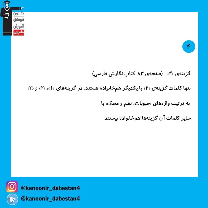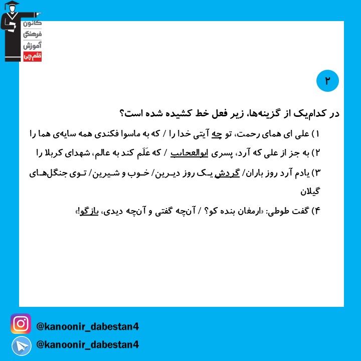 عکس هایی که در ادامه قرار گرفته است،نمونه سوال تستی درس فارسی چهارم دبستان است که برای تمرین شما در دوران عید توسط فاطمه احدزاده دانشجوی رشتهی مهندسی پلیمر دانشگاه تهران تهیه شده است.