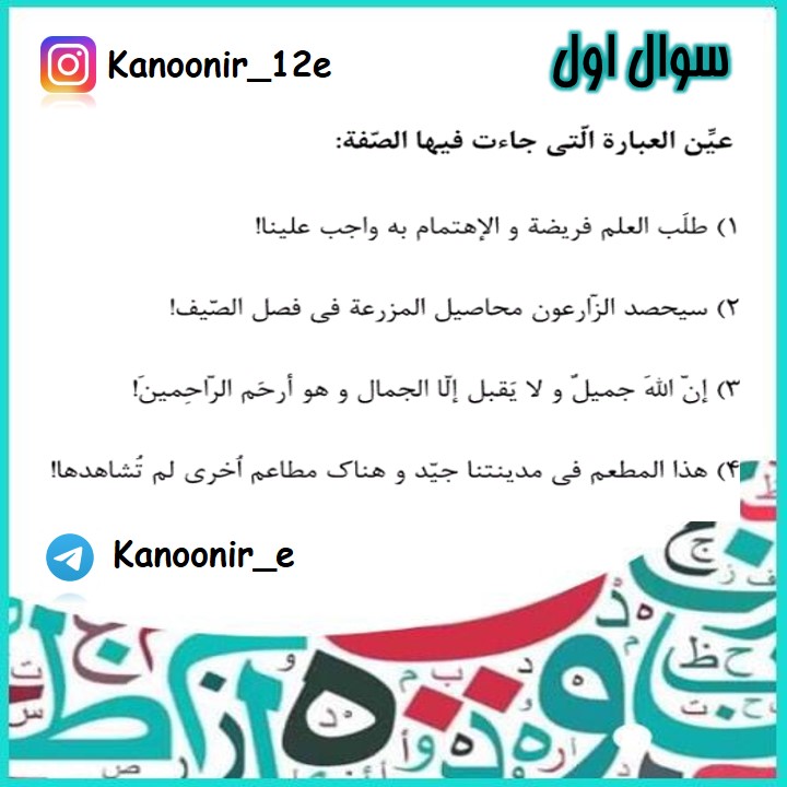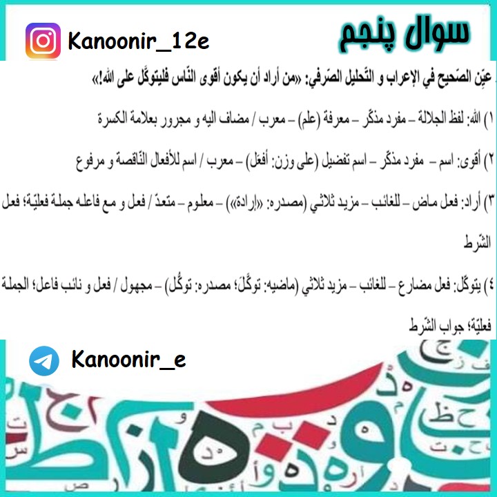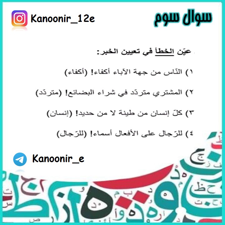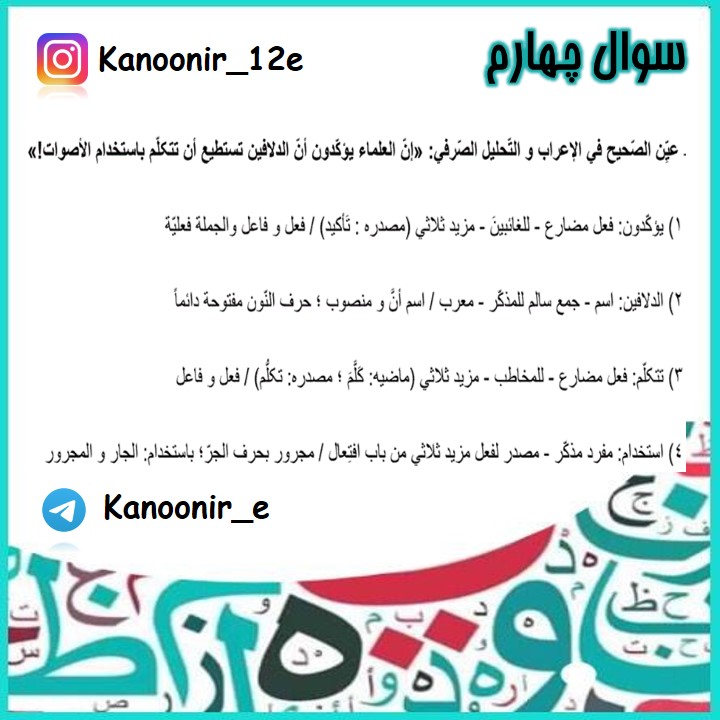 مجموعه تست دامدارگزینش شده از آزمون های کانونعربی پایه دهم و یازدهمبخش قواعدمنطبق با برنامه آزمون 7 فروردینمباحث کل کتابپاسخ تشریحی را از قسمت فایل های ضمیمه دانلود کنید.تست اول:تست دوم:تست سوم:تست چهارم:تست پنجم: