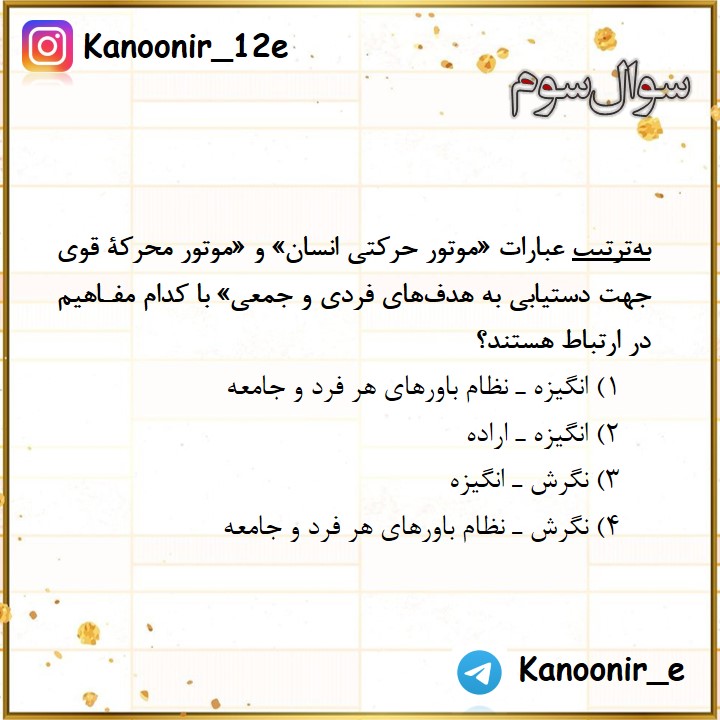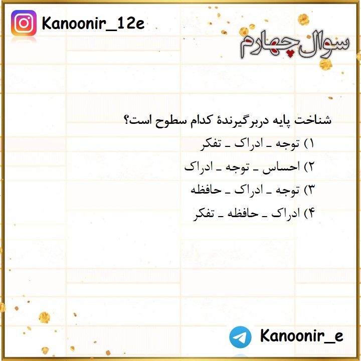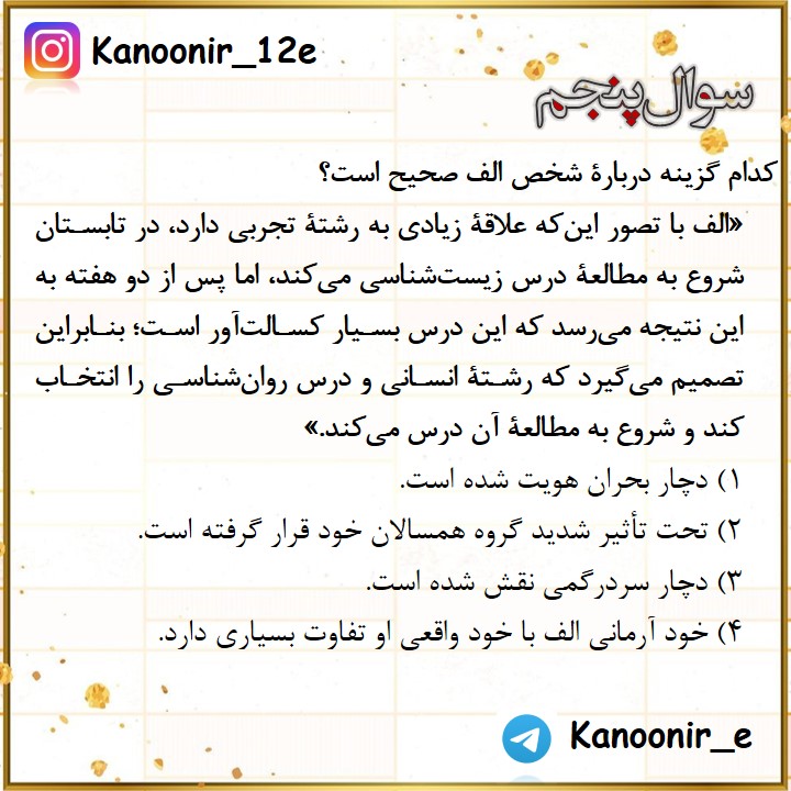 مجموعه تست روان شناسیگزینشگر سوالات: کیمیا طهماسبی - رتبه 7 کنکور سراسریمنطبق با برنامه آزمون 7 فروردینمباحث کل کتابادامه سوالات به همراه پاسخ تشریحی را از قسمت فایل های ضمیمه دانلود کنید.تست اول:تست دوم:تست سوم:تست چهارم:تست پنجم:
