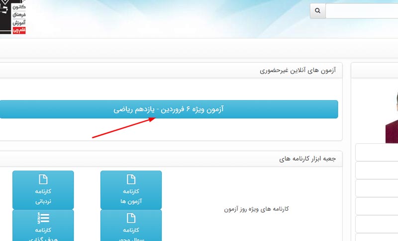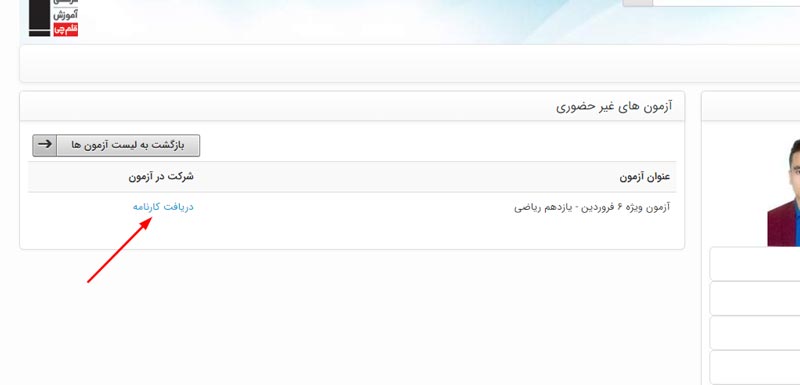 برای دریافت کارنامه آزمون 6 فروردین 99 باید برروی لینک همان قسمتی که در آزمون شرکت کرده اید کلیک کنید. کارنامه در این قسمت درج خواهد شد.