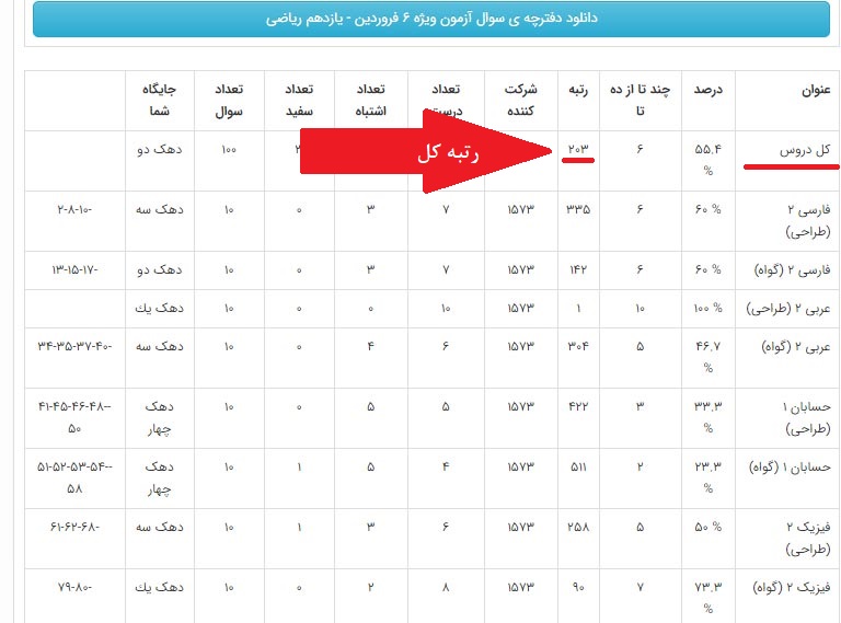 نکته مهم :اگر بعد از ساعت 5 در آزمون شرکت کرده باشید رتبه و دهک دریافت نخواهید کرد.