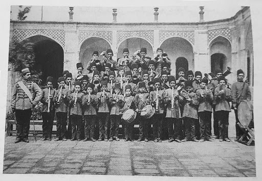 تاسیس مدرسه موسیقی نظامی در ایران به زمان ناصرالدین شاه و توسط امیرکبیر باز می گردد. که برای آموزش رسمی این رشته دو کارشناس موسیقی نظامی را از فرانسه به نام های بوسکه و رویون آورد.و در این نقطه موسیقی نظامی ایران و موسیقی غربی در کنار یکدیگر قرار گرفتند. در دوره ناصرالدین شاه موسیقی نظامی در این موارد استتفاده می شد :