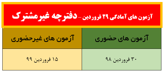 آزمون های آمادگی برای دفترچه غیرمشترك: