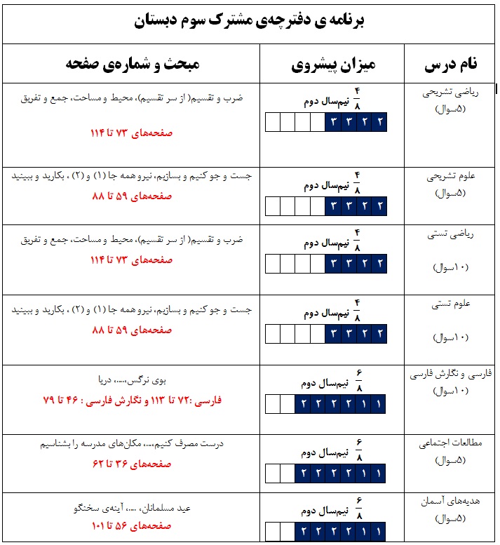 تغییرات آزمون 12 اردیبهشت گروه سوم دبستان