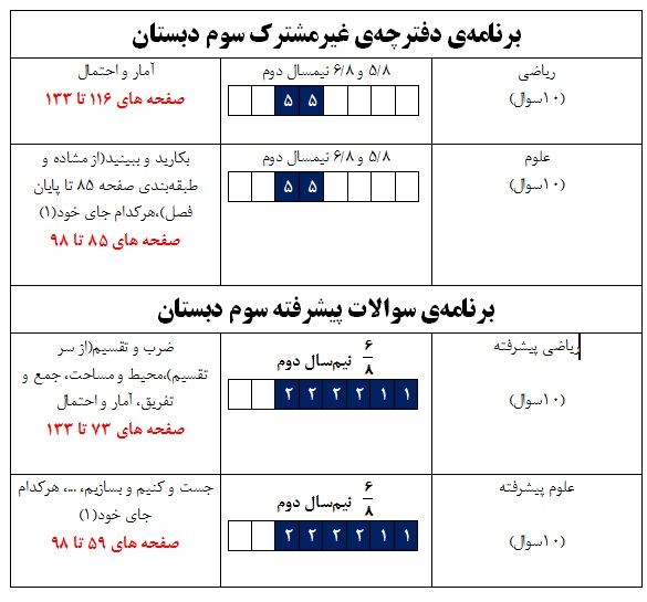 و برنامه دفترچه غیر مشترک هم به صورت زیر است :