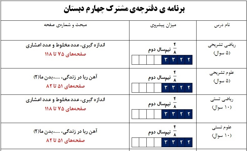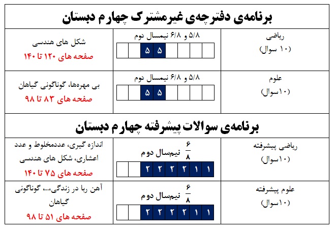 تغییرات آزمون 12 اردیبهشت گروه چهارم دبستان