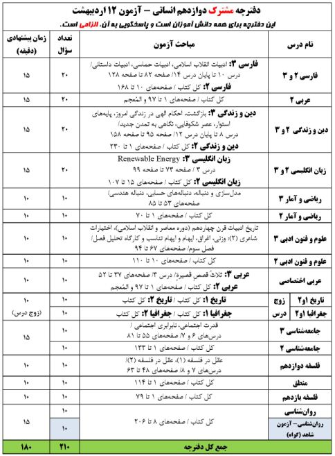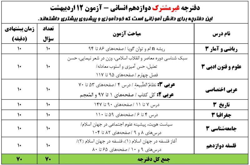 * آزمون 12 اردیبهشت شامل 2 دفترچه است: دفترچه مشترک و دفترچه غیر مشترک