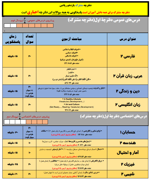 دفترچه مشترک: شامل درس های عمومی و اختصاصی است.