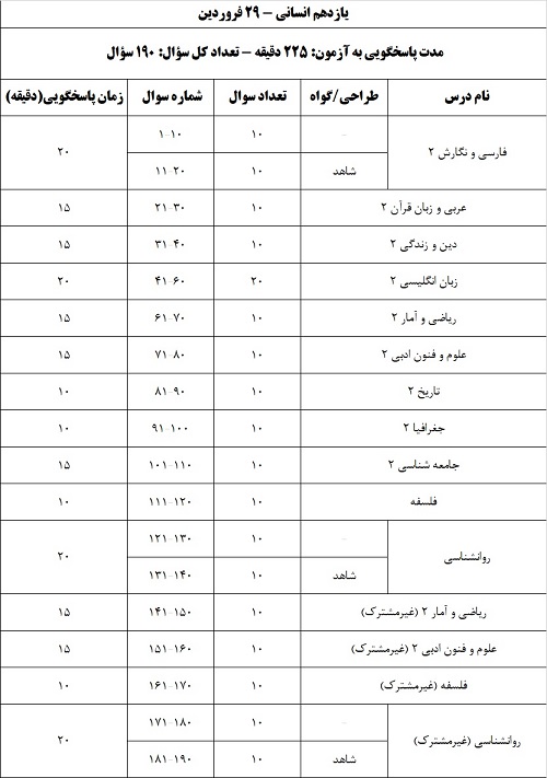 ویژگیهای آزمون 29 فروردین پایه یازدهم انسانی