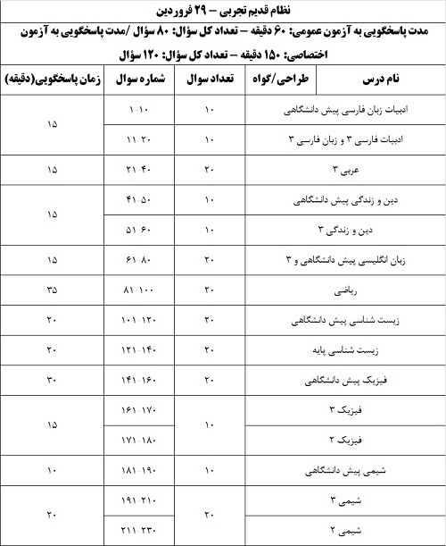 ویژگیهای آزمون 29 فروردین نظام قدیم تجربی را مشاهده نمایید.