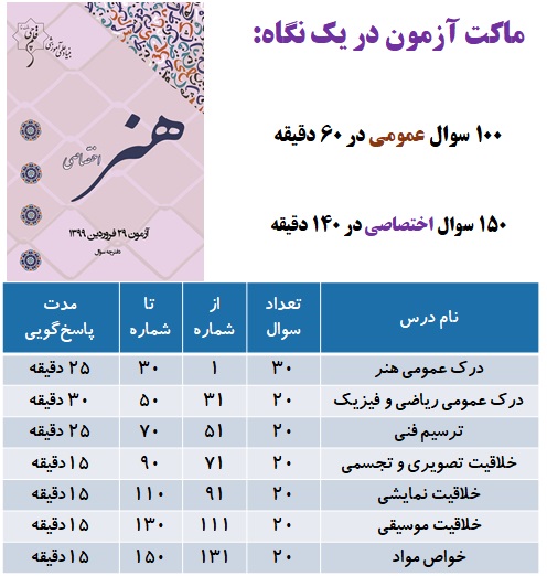 به دلیل عدم وابستگی کنکور هنر در درس های تخصصی به درس های مدرسه در برنامه هنر تغییرات نداریم.