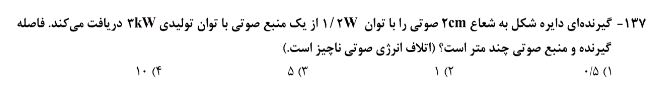 3- رابطه توان رسیده به گیرنده (P) با توان منبع صوتی (P1) در فاصله d از آن به صورت زیر است: