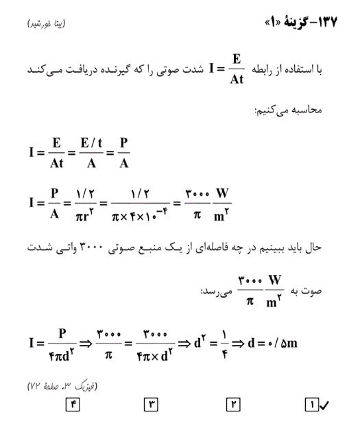1- باید مساحت سطح گیرنده صوت در A جایگذاری شود.