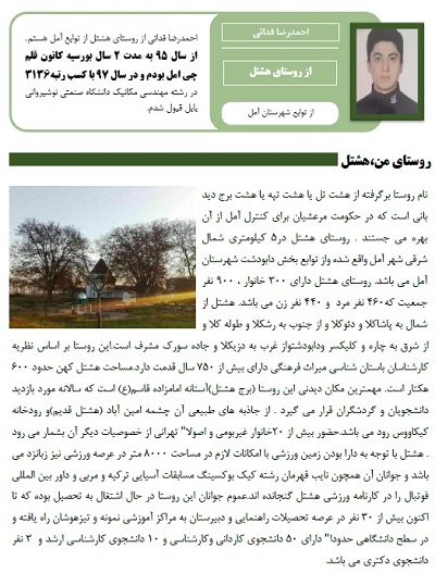احمدرضا فدائی از روستای هشتل از توابع آمل هستم .از سال 95 به مدت 2 سال بورسیه کانون قلمچی امل بودم و در سال 97 با کسب رتبه 3136 در رشته مهندسی مکانیک دانشگاه صنعتی نوشیروانی بابل قبول شدم.