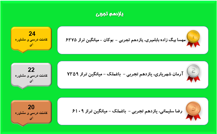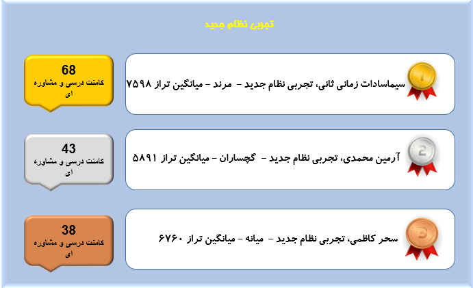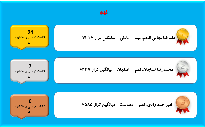 همانطور که میدانید هر روزه در قسمت کامنت های سایت کانون تعداد بسیار زیادی کامنت توسط دانش آموزان،دبیران،دانشجویان،پشتیبان ها و مشاوران ثبت میشود و گفتگوهای زیادی شکل میگیرد که در این بین بسیاری از این گفتگوها مربوط به مسائل درسی و مشاوره ای است در این مطلب هر هفته اسامی دانش آموزان عزیزی که بیشترین تعداد کامنت های درسی و مشاورهای را در صفحات مقاطع مربوط به خودشان ارسال میکنند آورده میشود.