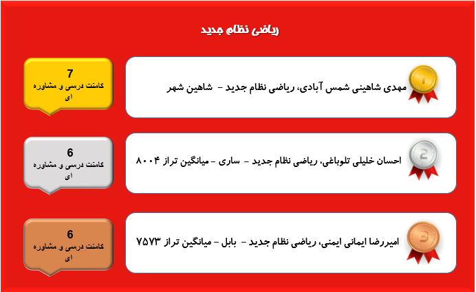 از همهی این دانش آموزان و سایر دانش آموزان فعال در قسمت کامنت های کانون که علاوه بر یادگیری خودشان به یادگیری سایر دانش آموزان نیز کمک میکنند صمیمانه سپاسگزاریم.