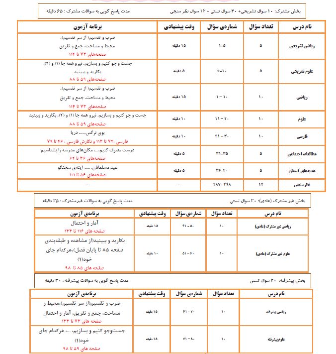 ویژگی آزمون 12 اردیبهشت سوم دبستان