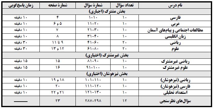 ویژگی های آزمون 12 اردیبهشت پایه هشتم