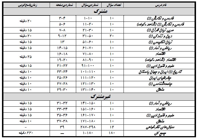 مطالب درسی کنکوری ها