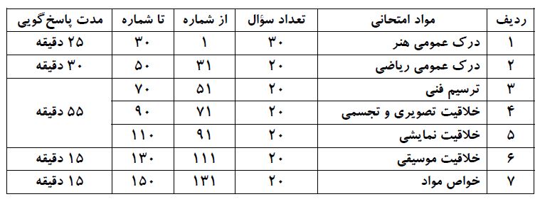 ویژگی های آزمون 12 اردیبهشت گروه هنر