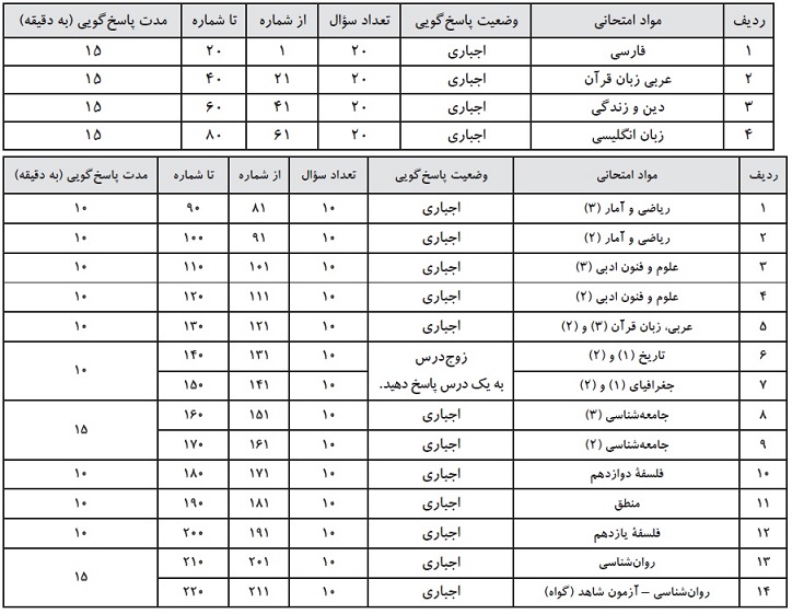 ویژگیهای آزمون 12 اردیبهشت نظام جدید انسانی