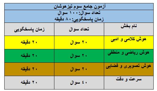 آزمون 26 اردی بهشت شامل سه بخش است: