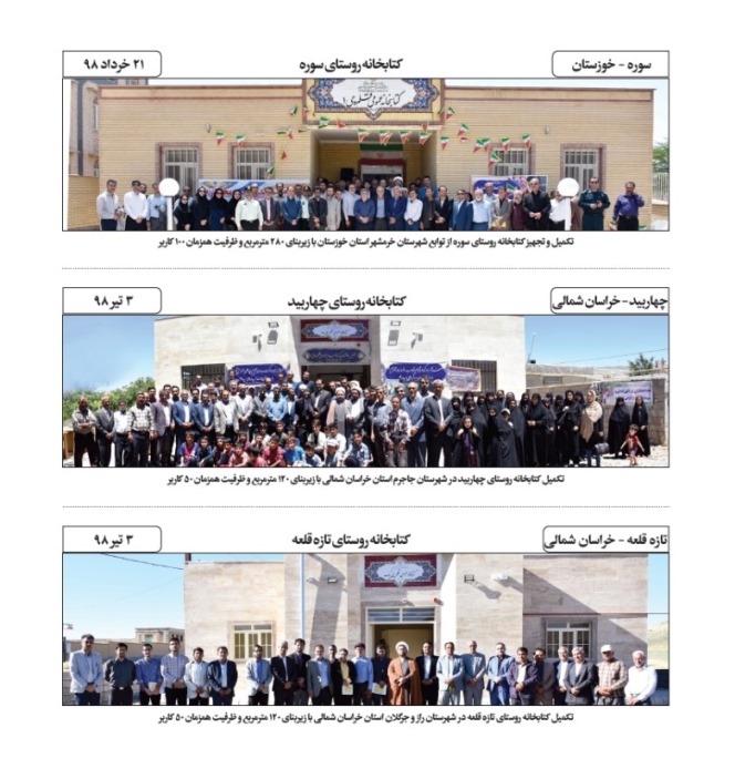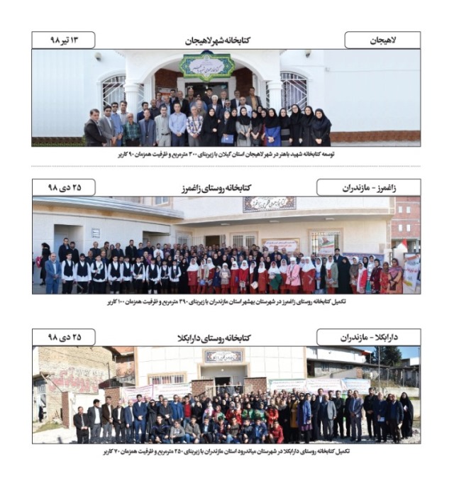 همچنین تکمیل و #توسعه 6 کتابخانه شهری و روستایی شامل 2 کتابخانه در استان خراسان شمالی، 2 کتابخانه در استان مازندران، یک کتابخانه در استان خوزستان و یک کتابخانه در استان گیلان انجام شد.