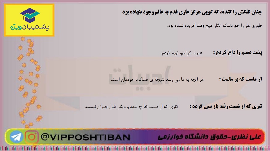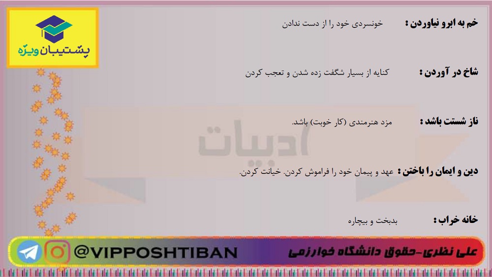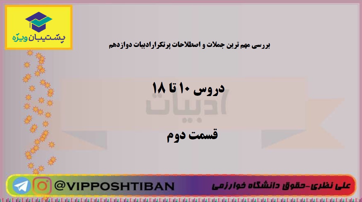 در این فایل به بررسی مهم ترین اصطلاحات و ابیات نیمسال دوم است که برای شما قرار داده شده است.