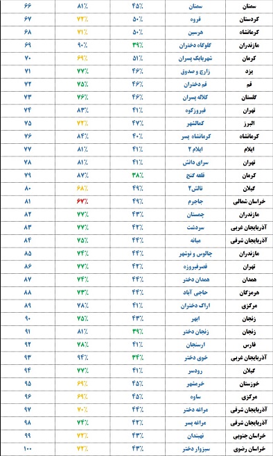 در جدول زیر لیست 100 نمایندگی برتر کانون در آزمون 19 اردیبهشت را مشاهده می کنید. در این گزارش هم درصد ثبت نام دانش آموزان در آزمون هدیه 19 اردیبهشت و هم درصد شرکت کنندگان در نمایندگی های برتر را مشاهده می کنید.