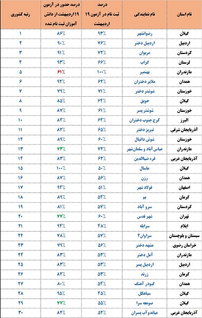 100 نمایندگی برتر کانون در آزمون 19 اردیبهشت چند درصد حضور؟