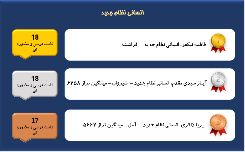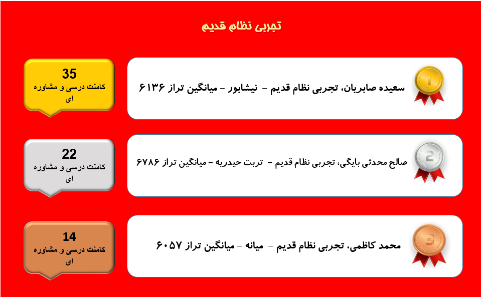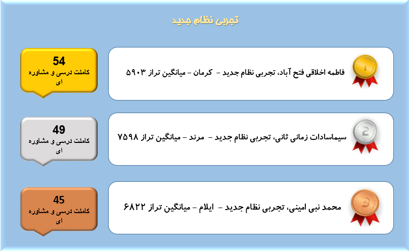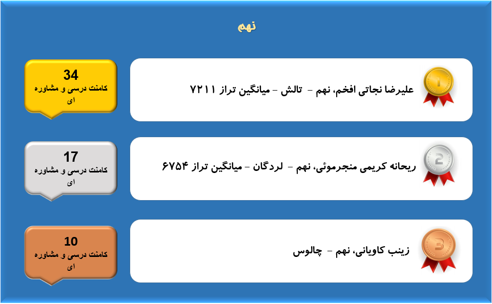 همانطور که میدانید هر روزه در قسمت کامنت های سایت کانون تعداد بسیار زیادی کامنت توسط دانش آموزان،دبیران،دانشجویان،پشتیبان ها و مشاوران ثبت میشود و گفتگوهای زیادی شکل میگیرد که در این بین بسیاری از این گفتگوها مربوط به مسائل درسی و مشاوره ای است در این مطلب هر هفته اسامی دانش آموزان عزیزی که بیشترین تعداد کامنت های درسی و مشاورهای را در صفحات مقاطع مربوط به خودشان ارسال میکنند آورده میشود.
