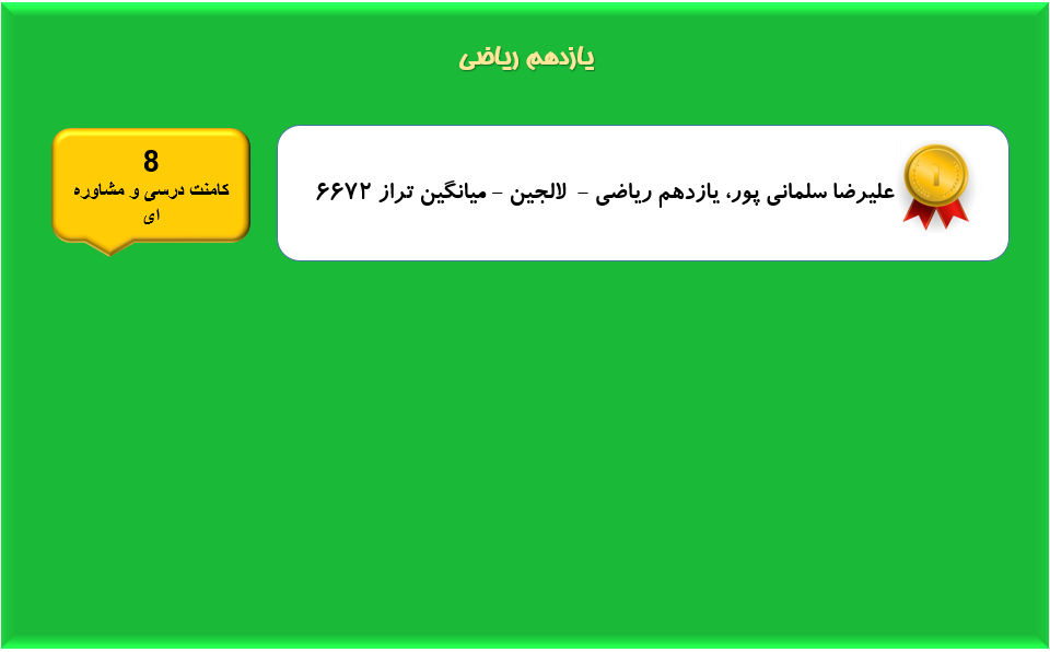 از همهی این دانش آموزان و سایر دانش آموزان فعال در قسمت کامنت های کانون که علاوه بر یادگیری خودشان به یادگیری سایر دانش آموزان نیز کمک میکنند صمیمانه سپاسگزاریم.