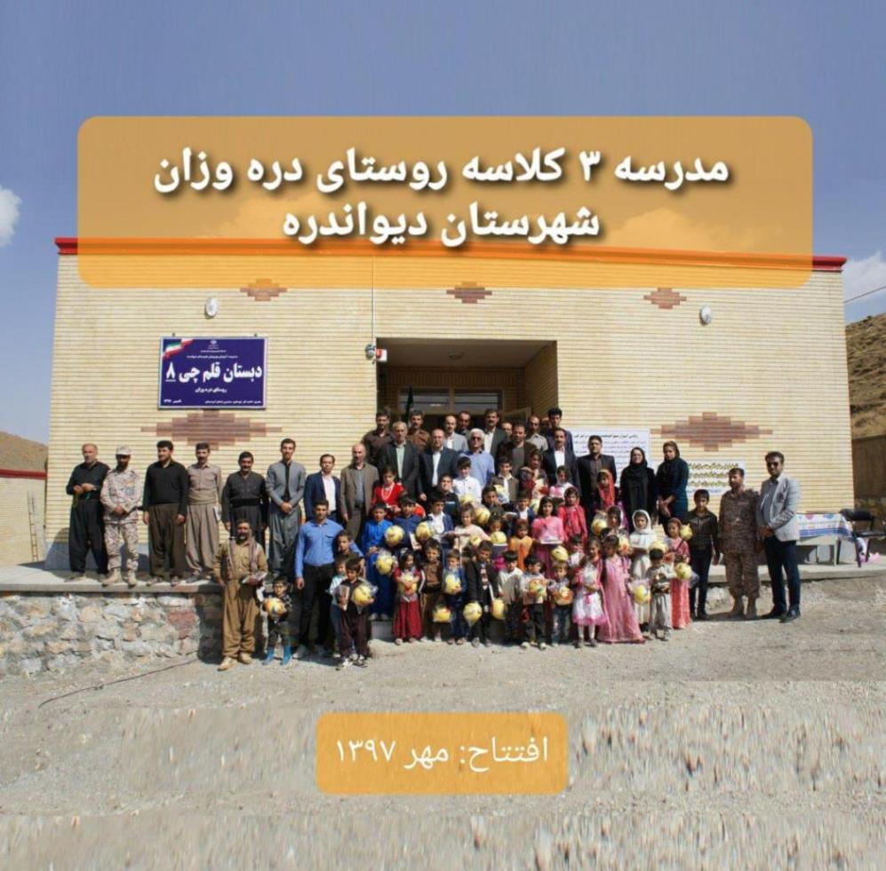 طبق این تفاهم نامه، مدارس دو کلاسه در روستاهای تراق تپه در شهرستان مریوان، طاله وران از توابع بخش کلاترزان شهرستان سنندج و بغده کندی در شهرستان سقز، مدارس سه کلاسه در روستاهای کماله در شهرستان سروآباد و خاندان قلی در شهرستان بیجار و همچنین مدرسه یک کلاسه در روستای ینگی کند شهرستان دیواندره برای بهره مندی حدود 300 دانش آموز در حال ساخت است.