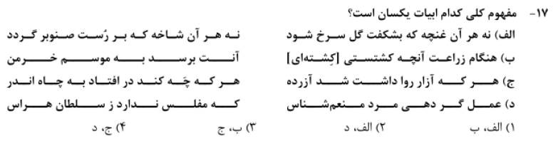 ضمنا با توجه به درخواست دانش آموزان ، متن سوالی که بیت زیر در آن بوده است ، در پایین بیت منتشر می گردد. شما نیز می توانید نظر خود را درباره گزینه صحیح این سوال ، با ذکر دلیل زیر همین متن بنویسید.