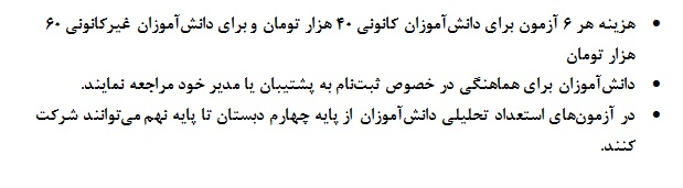 دانش آموزان کانونی و غیرکانونی می توانند در این آزمون ها شرکت کنند
