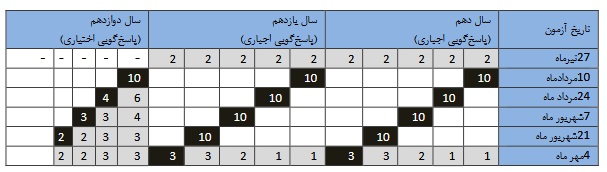 توجه: در تعیین حجم برنامه هر آزمون، به بهینه بودن حجم کل برنامة دو هفته توجه میشود و در درسهای مختلف میزان پیشروی برنامه کارشناسی میشود.
