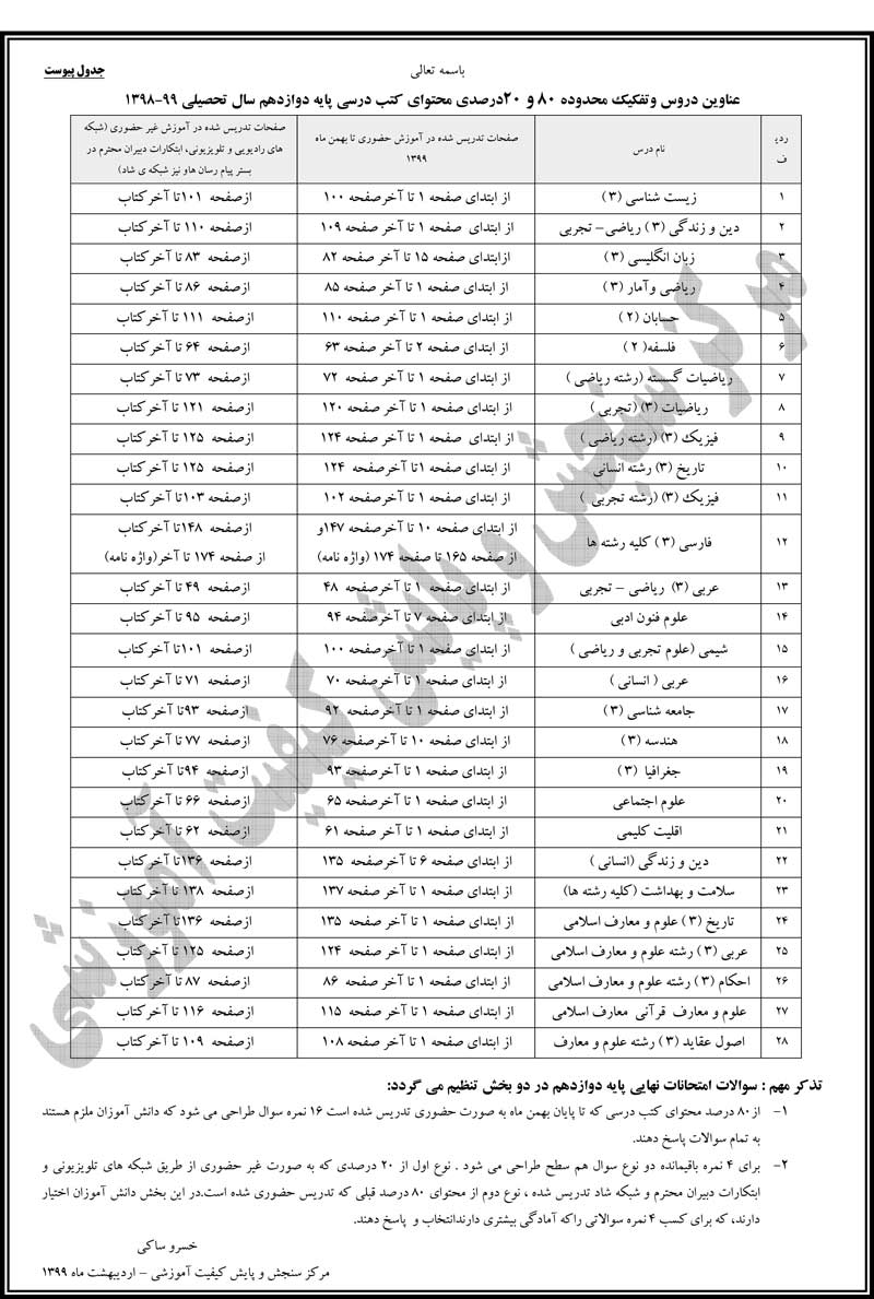 در ادامه برنامه امتحان نهایی خرداد 99 دوازدهمی ها را مشاهده می کنید.