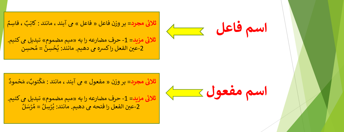 پاسخ کامنت محمد عابدینى - دانشجوی رشتهی حقوق دانشگاه تهران: چون اولش مُ داره و عین الفعلش کسره داره فاعله - تاریخ ثبت: 13990202