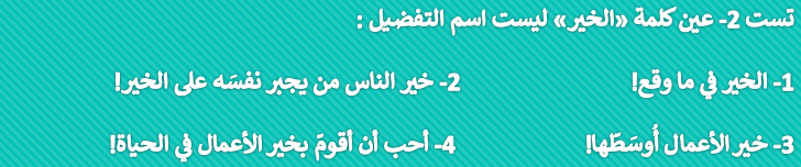 پاسخ کامنت فاطمه منصورخاکى - گروه آزمون: سلام. دو اسم «خَیر» و «شَرّ» اگر به معنی «بدتر» و «خوبتر» باشند اسم تفضیل هستند، اما اسم تفضیل نقش نیست (تحلیل صرفی یا تجزیه کلمات نقش نیستند بلکه محل اعرابی را نقش میگویند، مانند مبتدا، خیر، فعل، فاعل، مفعول، مفعولمطلق، حال، استثناء و ...) - تاریخ ثبت: 13990207