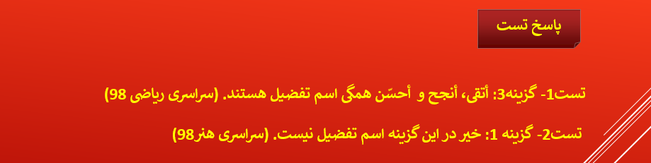 پاسخ کامنت علی خرم، تجربى نظام جدید - داراب - میانگین تراز 6443: اگر حرف اولش و دومش فتحه و اخرش ساکن بود اسم تفضیله وگرنه فعل هست(بر وزن <افل > روی الف فتحه و روی ف فتحه با تشدید) - تاریخ ثبت: 13990206
