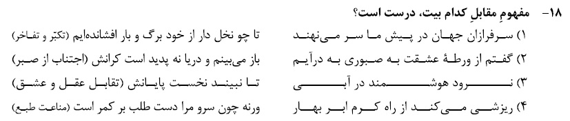ضمنا متن سوالی که بیت زیر در آن بوده است ، در پایین بیت منتشر می گردد. شما نیز می توانید نظر خود را درباره گزینه صحیح این سوال ، با ذکر دلیل زیر همین متن بنویسید.