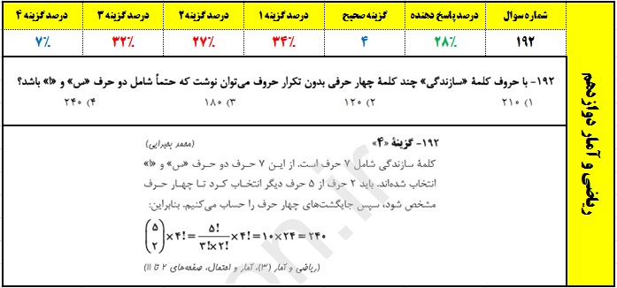 برای استفاده بیشتر دانش آموزان ، متن سوال های دام دار ، درصد پاسخ به این سوال ها ، گزینه صحیح ، درصد پاسخ به هرگزینه و درصد پاسخ به گزینه صحیح را نیز آورده ایم.شما با دنبال کردن این مطلب می توانید تا روز کنکور حدود 150 تا 200 سوال دام دار و اشتباهات متداول دانش آموزان را یاد بگیرید.