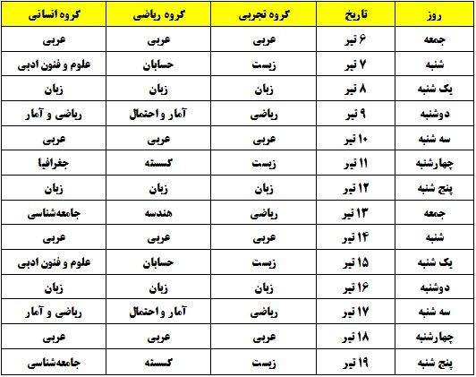 تقویم بارگذاری سوالهای دام دار در سایت از 6 تیر تا 19 تیر: